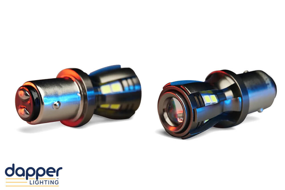 Dapper Lighting Switchback - Same design as the Revive bulbs except has a unique feature, lights up white with running lights and switches to amber for turn signals. 5-year warranty