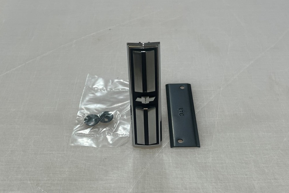 Die-cast zinc reproduction grille emblem for 1967 Camaro models with satin brushed chrome finish and iconic Bow Tie center design. Fits all standard or Z28 models.