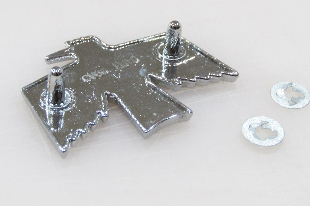 Get your 1967 Firebird looking showroom-ready with this reproduction fuel tank door emblem! It's a precise replacement for original GM Part # 9789710, complete with chrome plating and eye-catching red and black details. Mounting nuts are included so you can get it installed right away. It's officially licensed by General Motors and proudly made in the USA.