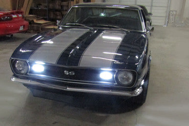 Increase reliability and add a modern look with 1968 Camaro led strip parking lights. The led strip also has a more even light output since the light comes from the full length of the lens instead of the center and has no metal contacts. 1968 Camaros have a metal contact on the parking lights that easily corrodes, this causes all kinds of parking light problems. This is eliminated by using a led strip instead of a bulb inside the housing. These light up white with the parking lights and switch to amber when the turn signals are in use. We use brand new reproduction lens/housing for a factory look and eliminate the original wiring/contacts. Trim rings available in chrome or satin black, if satin black trim are selected the housings will also be powder coated black. Uses aluminum powder coated black brackets that mount the control box for the lights to the back of the light which makes them an easy install with a reliable connection. Since they are led they require changing to led compatible flashers under the dash. Uses a ground wire instead of a chassis ground and a weather resistant quick connect for better reliability. Includes install hardware. Fits all 1968 Standard Camaros - will not fit RS Camaros.