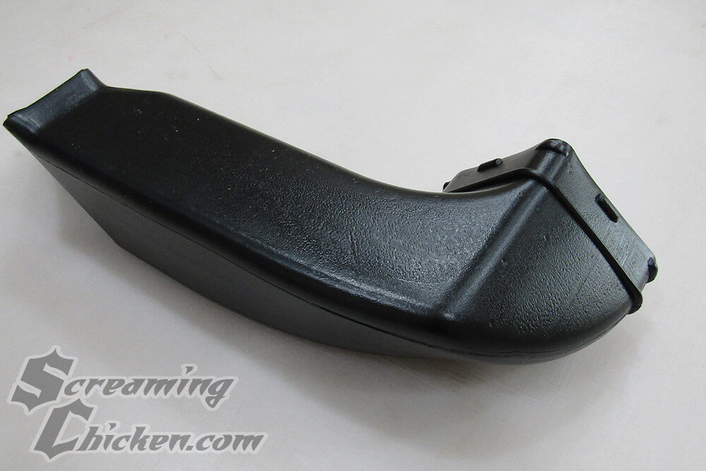 1973-81 Firebird Trans Am black air cleaner fender duct that attaches to your air cleaner duct elbow and draws air into the air cleaner. This part installs in the fender and is barely visible from the engine bay. Correct for 1973-81 Trans Am. Reproduction replaces original GM part numbers 489916 and 10012668.