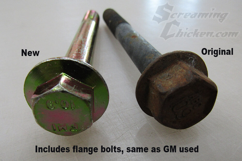 Includes six 10.9 flange bolts & 2 washers for the shorter bolts, same as what GM used. Kit features zinc plated 10.9 grade hardware (equal in strength to American Grade 9) strong enough to take the torque spec recommended by GM on this location. Kit includes hardware only. Hardware is intended for the stock k-member only and will not work on tubular k-members.