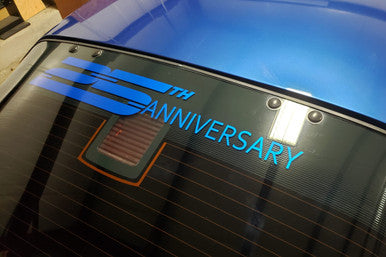 Vinyl window sticker for 1992 Camaros with a 25th anniversary logo design - available in two sizes (4" tall x 25.5" long or 5" tall x 32" long). Can be applied to glass or any flat smooth surface. Available in several colors to choose from. Be sure to get free color samples if you need a color match.