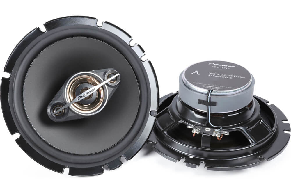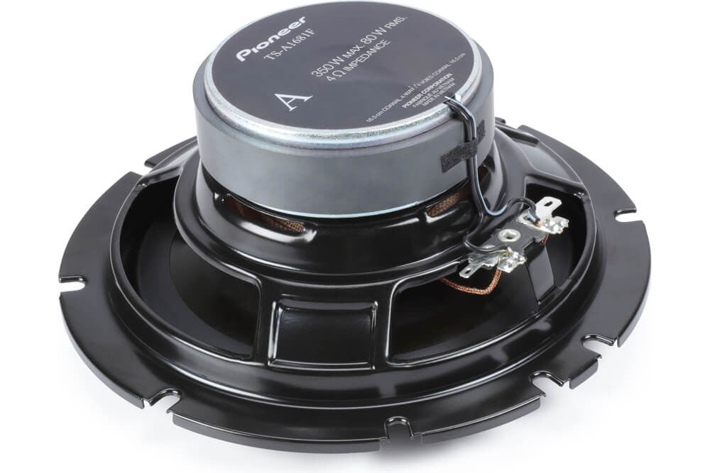 Includes a pair of Pioneer TS-A1681F speakers that will fit the door or rear seat speaker openings on 1993-2002 Camaros & Firebirds. These are 4 ohm speakers so if your car has the Monsoon amplified system these speakers will work better if you bypass or replace the factory amplifier. The TS-A1681F 6-1/2" speakers employ a strong carbon/mica reinforced polypropylene woofer cone supported by a rubber surround to deliver the lower frequencies with more punch. A midrange cone, semi-dome tweeter, and supertweeter ensure precise instrumental, vocal, and high-frequency details. These speakers work well with radio power or can be used with an amplifier, 80 watts RMS (350 watts peak power). 6 1/2" diameter speakers. Frequency response: 35-29,000 Hz
