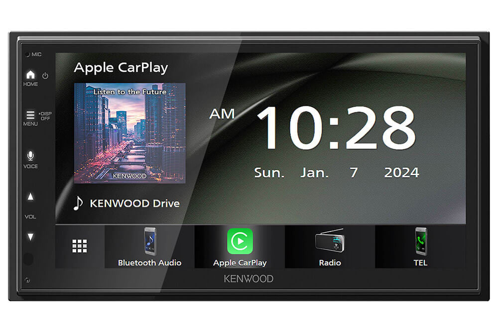 The DMX4710S from Kenwood works great with our Camaro/Firebird double din bezel/install kits. The newer super small chassis makes an easier install. In addition to the small chassis the DMX4710S features built-in Apple CarPlay® and Android Auto™. Plug in your iPhone® or Android phone, and the 6.8" screen displays the navigation, messaging, and music apps. If your phone is in the center console, you can still use this receiver's built-in Bluetooth® for wireless convenience to make phone calls (includes a wired microphone). This radio is easy to hook up one of our reverse cameras to and see where you're going when backing up. In addition to being easy to attach to your phone you can also listen to digital music thru the USB connection allowing you to use MP3, WMA, AAC music files. Features a 13 band graphic EQ with Drive EQ and digital time alignment and has 2.5 volt front and rear RCA outputs plus a subwoofer RCA output. Makes it easy to start with some speakers only and later on add amp and/or a sub. Will not fit without a double din bezel or extensive modifications to the stock bezel.