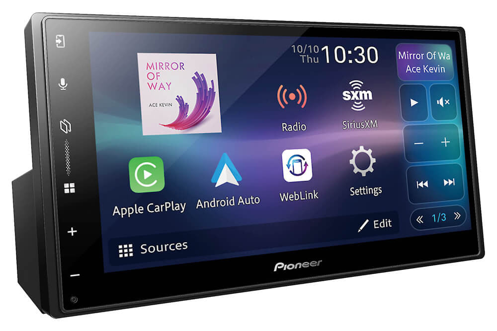 The DMH-W3000NEX from Pioneer connects your smartphone to Apple CarPlay® or Android Auto™ with no wires needed. Slightly larger chassis but still works well with our 1982-92 & 1993-2002 Camaro/Firebird double din bezel/bracket kits (see below for details). Includes a microphone that allows the driver to keep your eyes on the road as you use your voice to enter destinations, call up your favorite music, and send texts. This radio also makes it easy to add a reverse camera, which automatically displays when you put your car in reverse (needs working backup lights). Audio controls include a 13-band graphic equalizer and a 3-level loudness selector, along with time alignment adjustment that refines the stereo image at the driver's seat. Also has front, rear & sub RCA preamp outputs with a 4 volt output for easy system expansion. 14watt x 4 RMS or 50 watts x 4 peak internal amplifier also. Will not fit without a double din bezel or extensive modifications to the stock bezel.